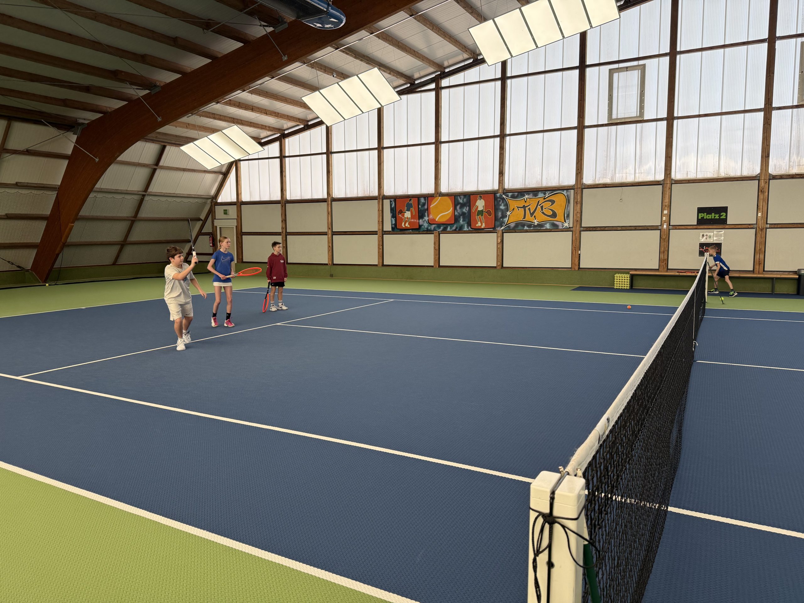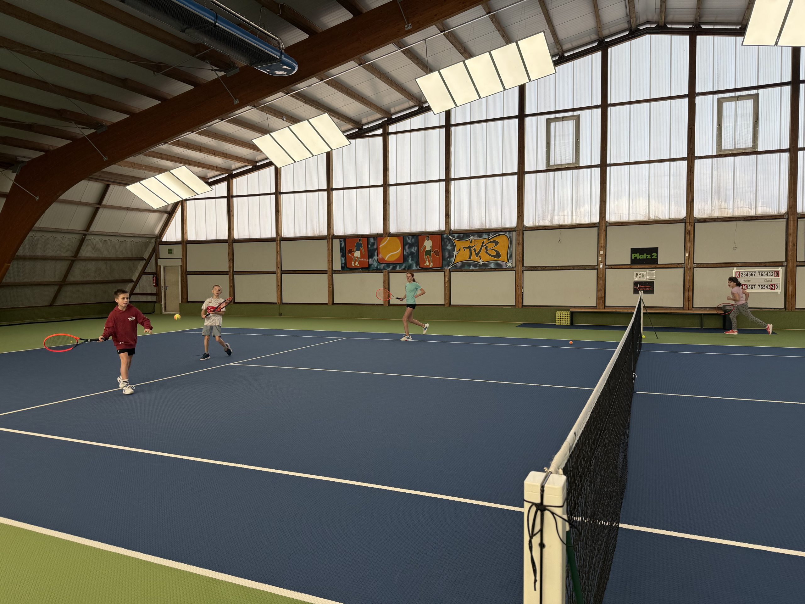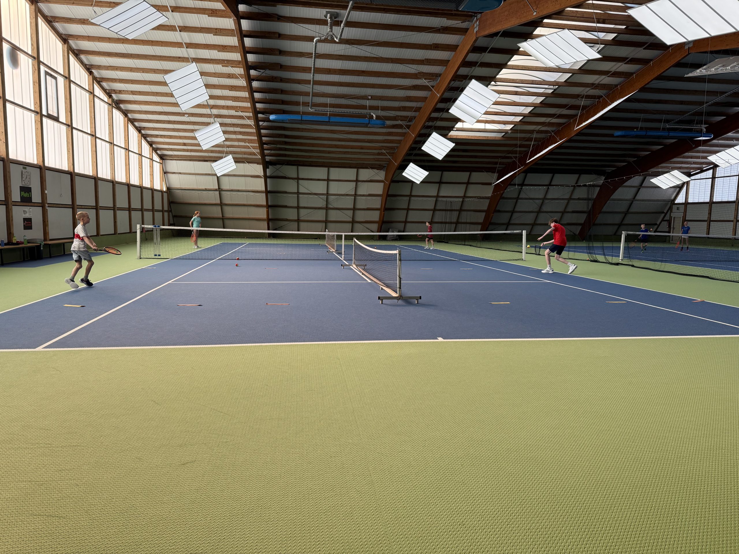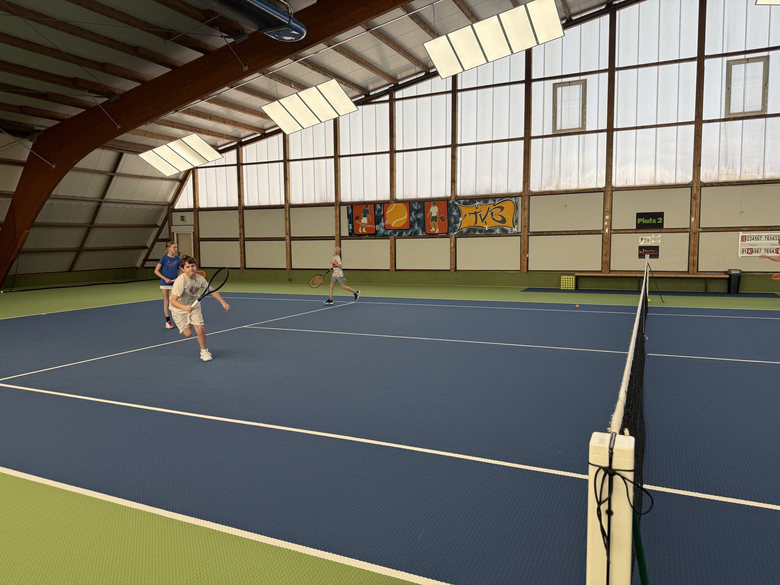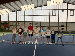 Gespielt wurde auf insgesamt drei Feldern: Auf zwei Kleinfeldplätzen wurden spannende Einzel ausgetragen, während auf einem weiteren Platz innerhalb des T-Felds Doppel gespielt wurde. Die Spielpaarungen wurden jeweils von einem Kind gezogen, was für zusätzliche Spannung und Abwechslung sorgte. Trainer Florian Jakob behielt dabei stets den Überblick und achtete darauf, dass alle Kinder gleichmäßig viel Spielzeit bekamen.