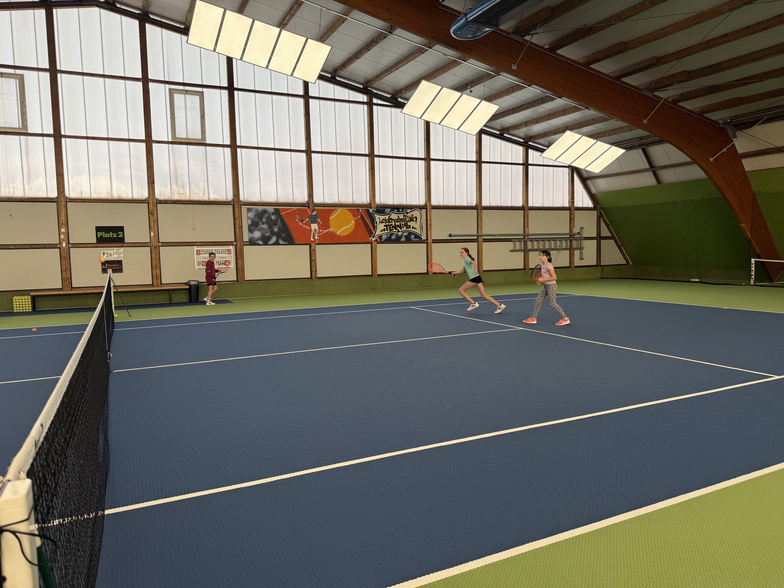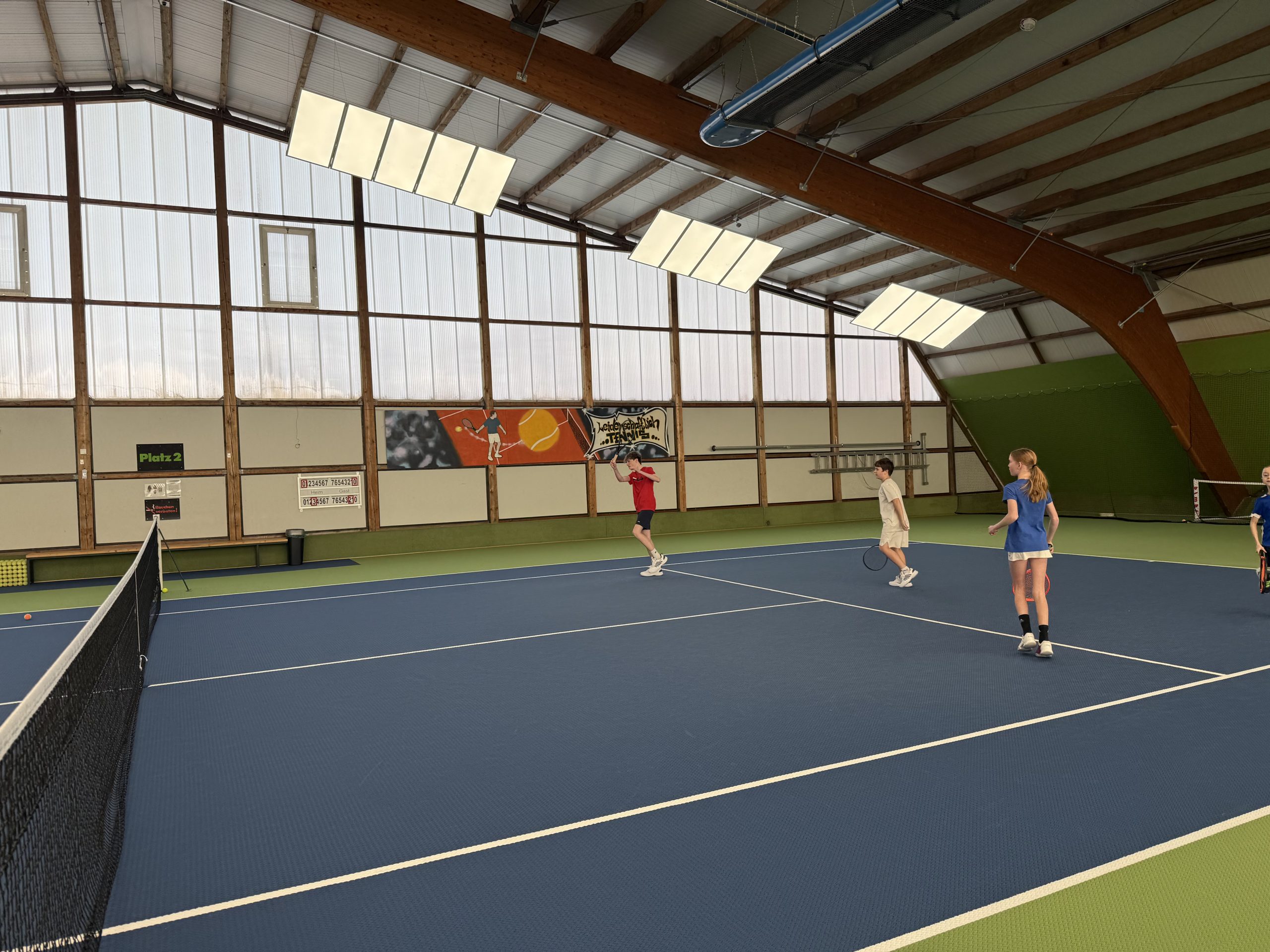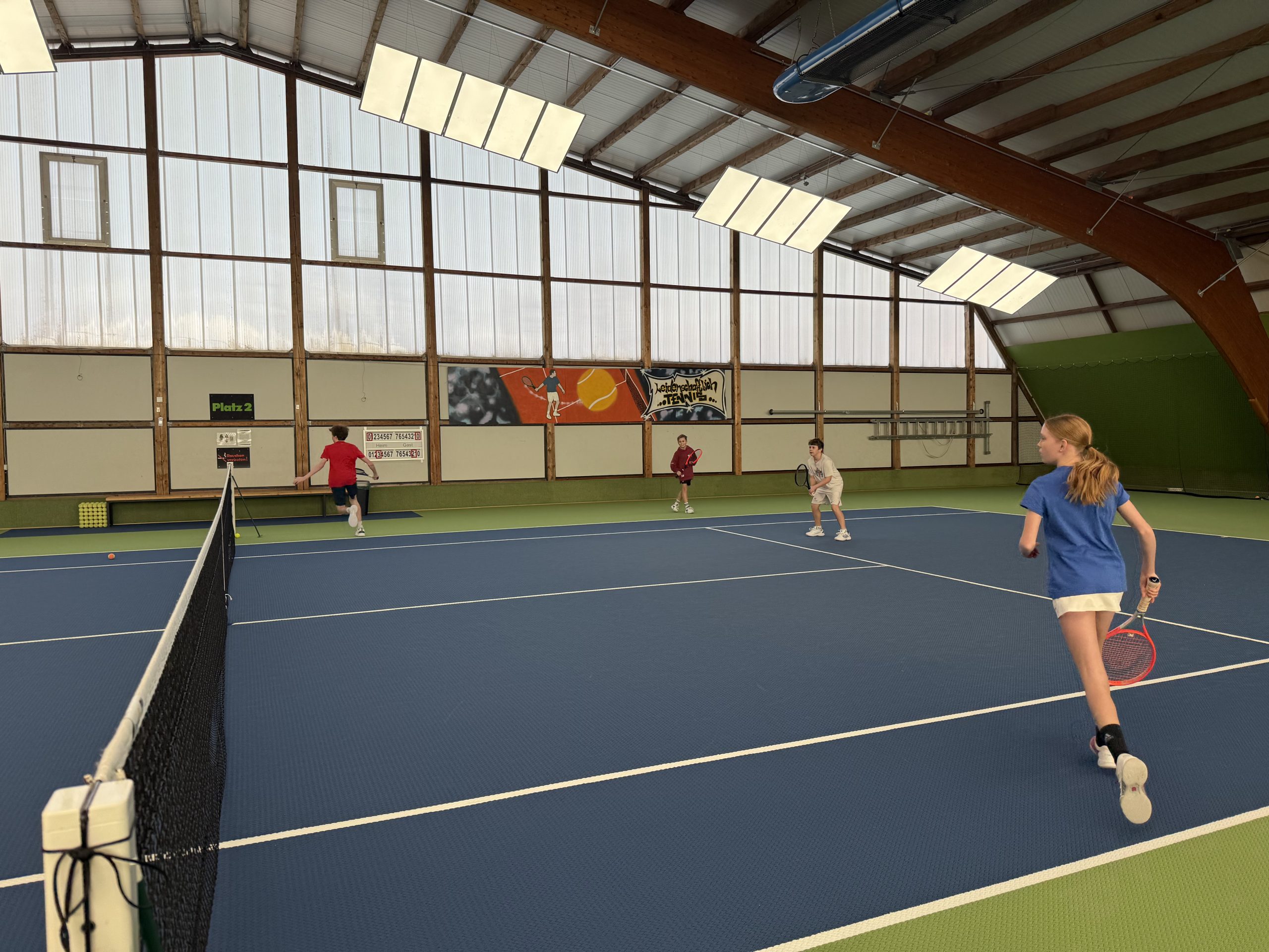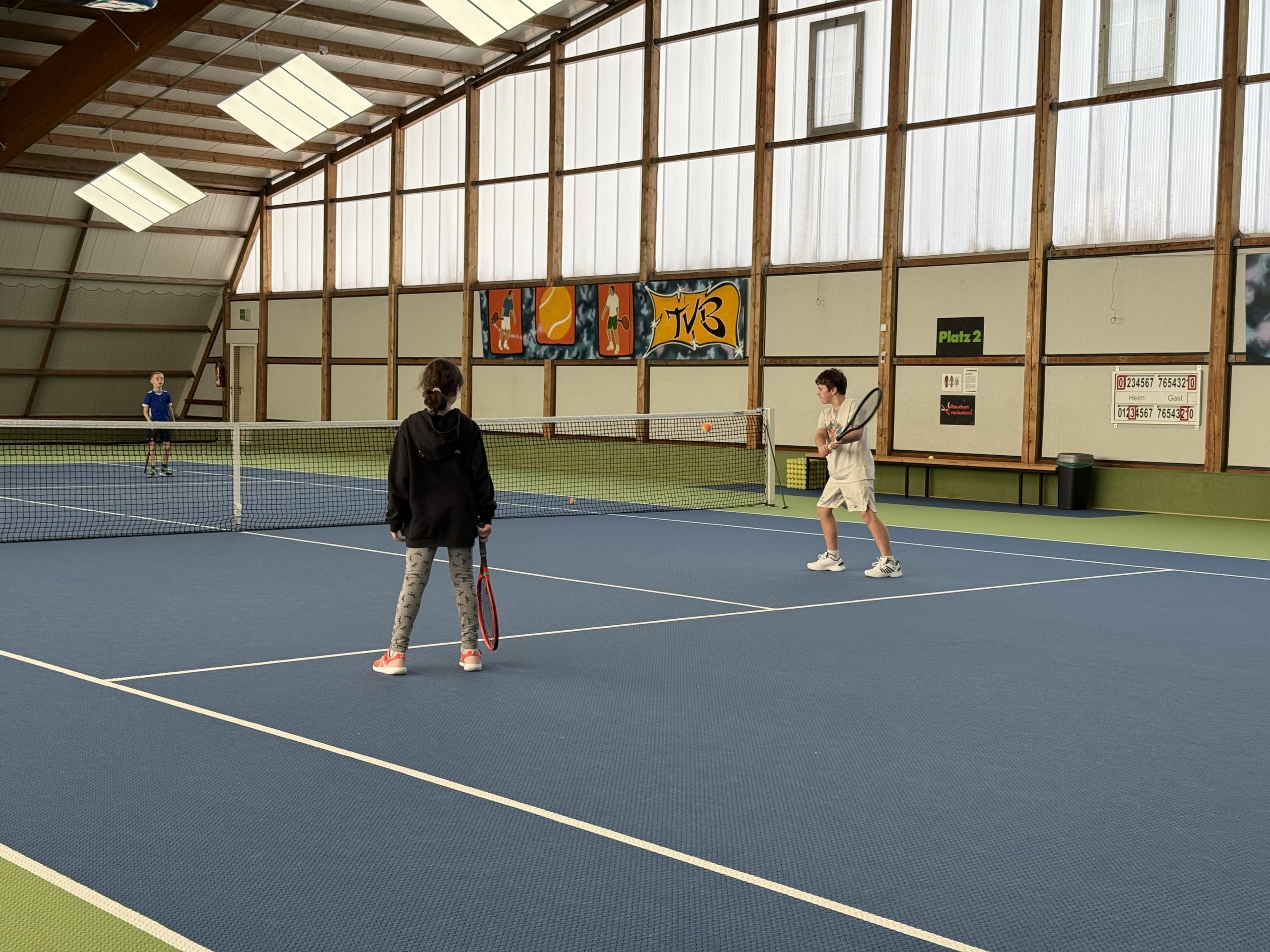 Gespielt wurde auf insgesamt drei Feldern: Auf zwei Kleinfeldplätzen wurden spannende Einzel ausgetragen, während auf einem weiteren Platz innerhalb des T-Felds Doppel gespielt wurde. Die Spielpaarungen wurden jeweils von einem Kind gezogen, was für zusätzliche Spannung und Abwechslung sorgte. Trainer Florian Jakob behielt dabei stets den Überblick und achtete darauf, dass alle Kinder gleichmäßig viel Spielzeit bekamen.