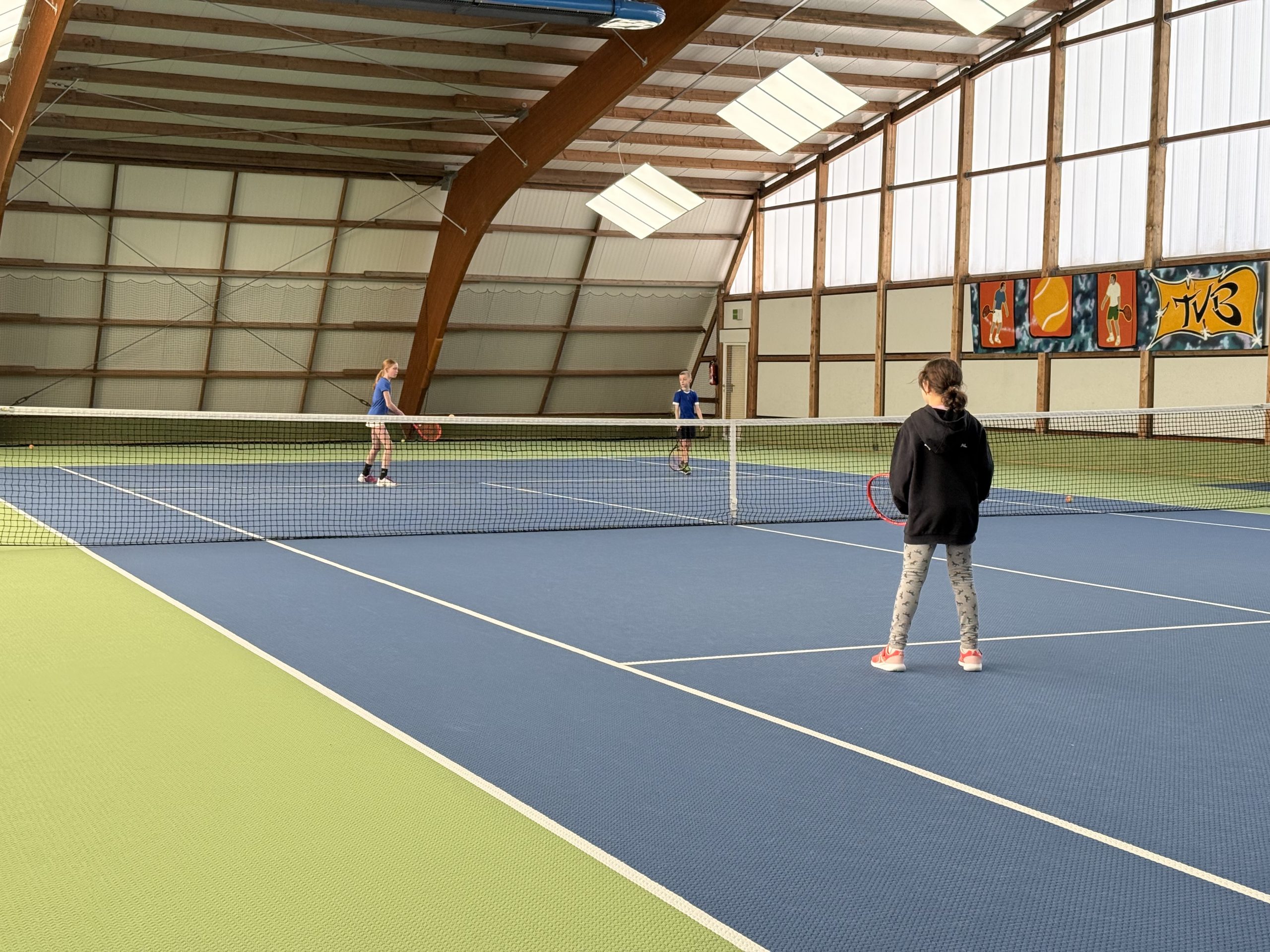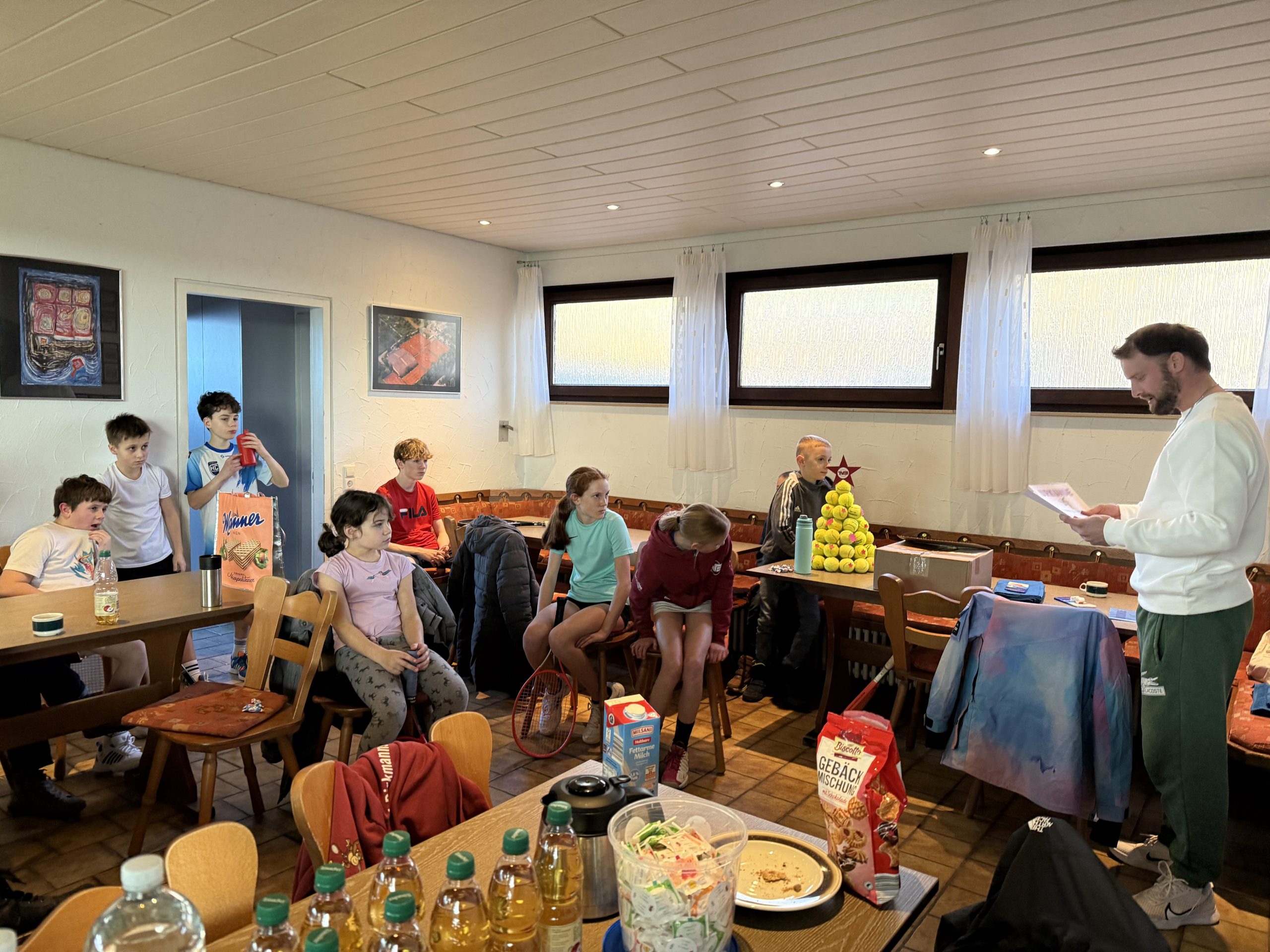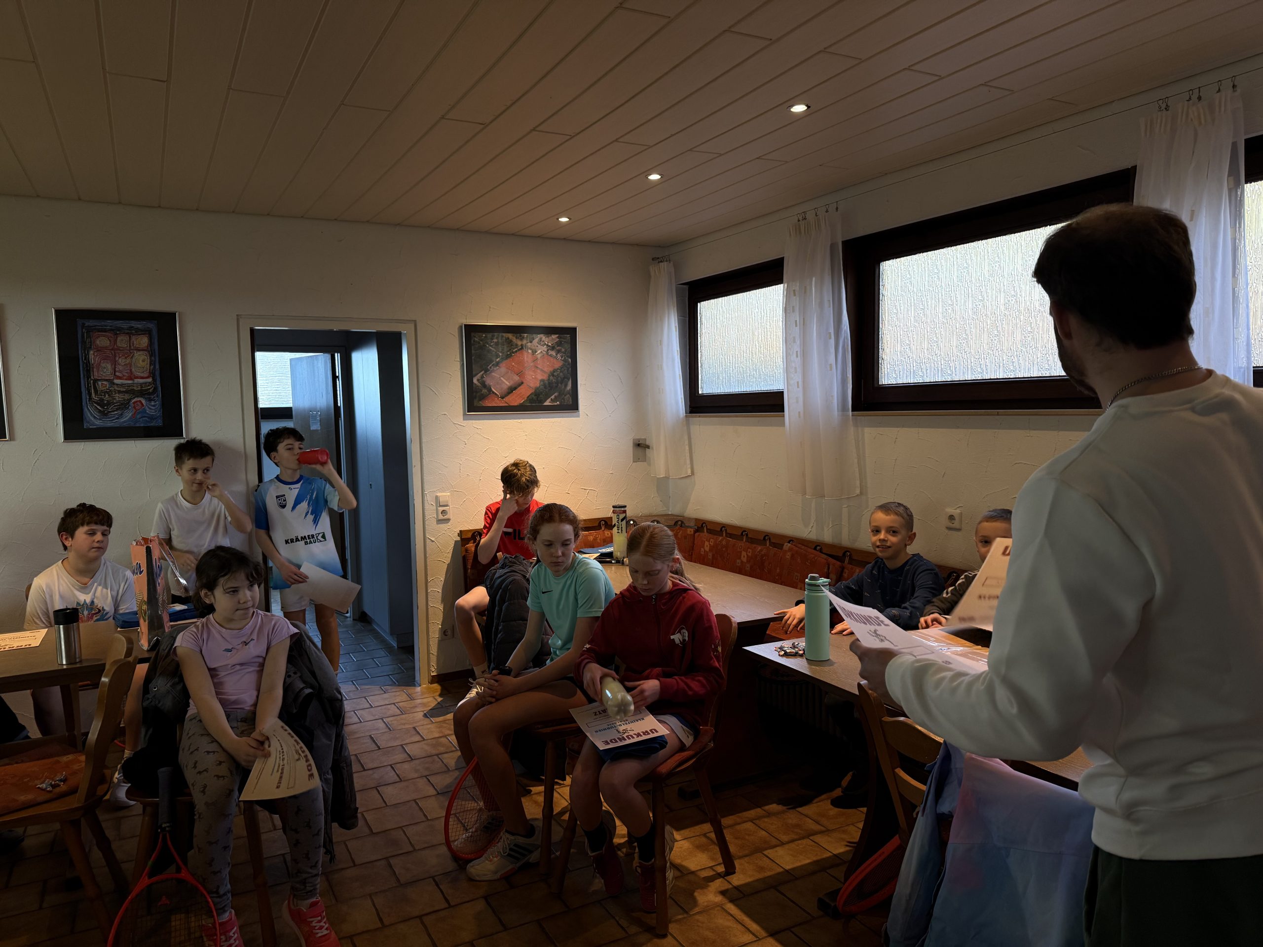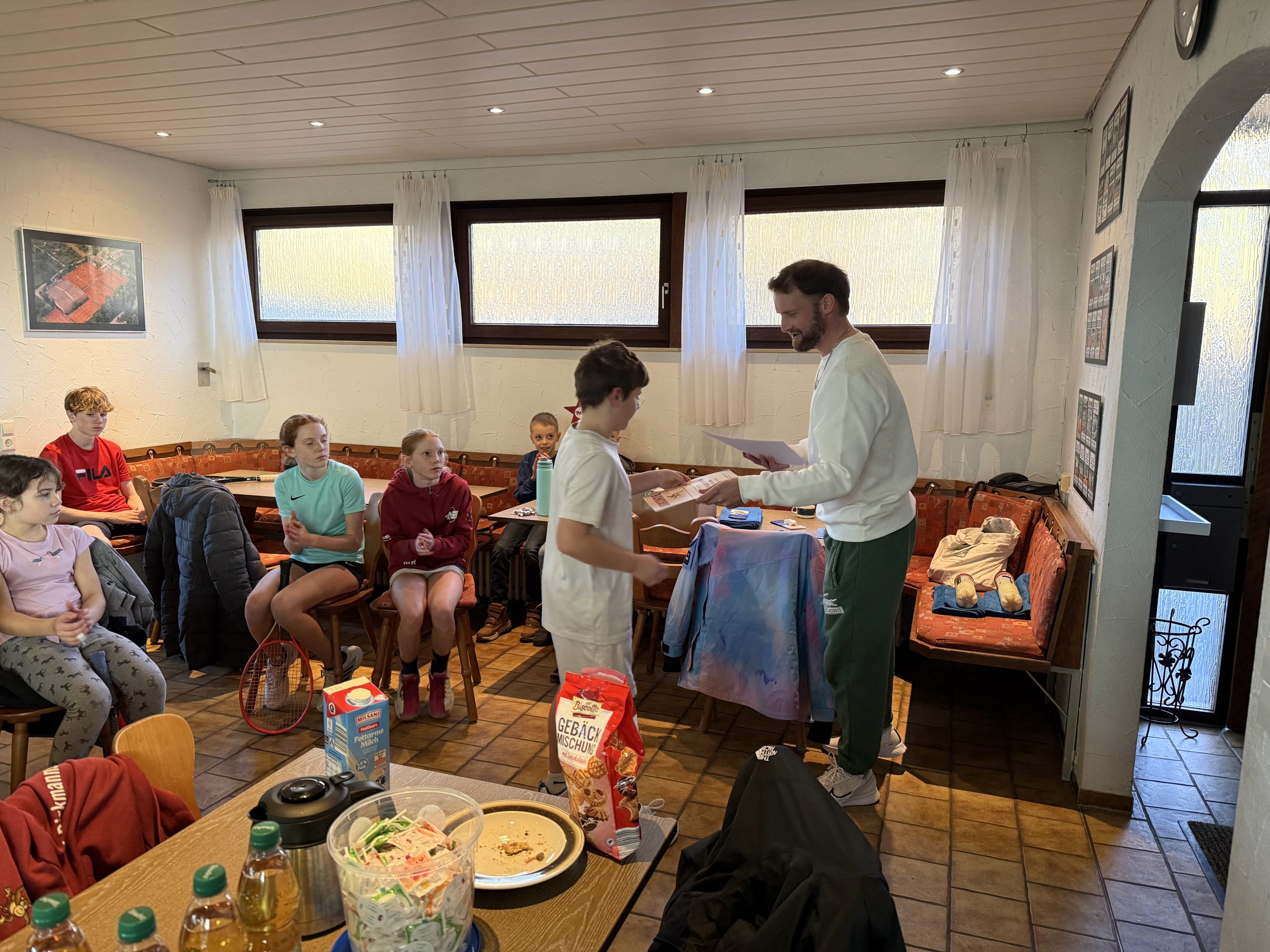 Gespielt wurde auf insgesamt drei Feldern: Auf zwei Kleinfeldplätzen wurden spannende Einzel ausgetragen, während auf einem weiteren Platz innerhalb des T-Felds Doppel gespielt wurde. Die Spielpaarungen wurden jeweils von einem Kind gezogen, was für zusätzliche Spannung und Abwechslung sorgte. Trainer Florian Jakob behielt dabei stets den Überblick und achtete darauf, dass alle Kinder gleichmäßig viel Spielzeit bekamen.
