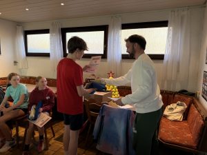 🥈 Platz 2 ging an Simon Wössner, der sich über eine Urkunde, ein Handtuch und natürlich eine Schokolade freuen durfte.