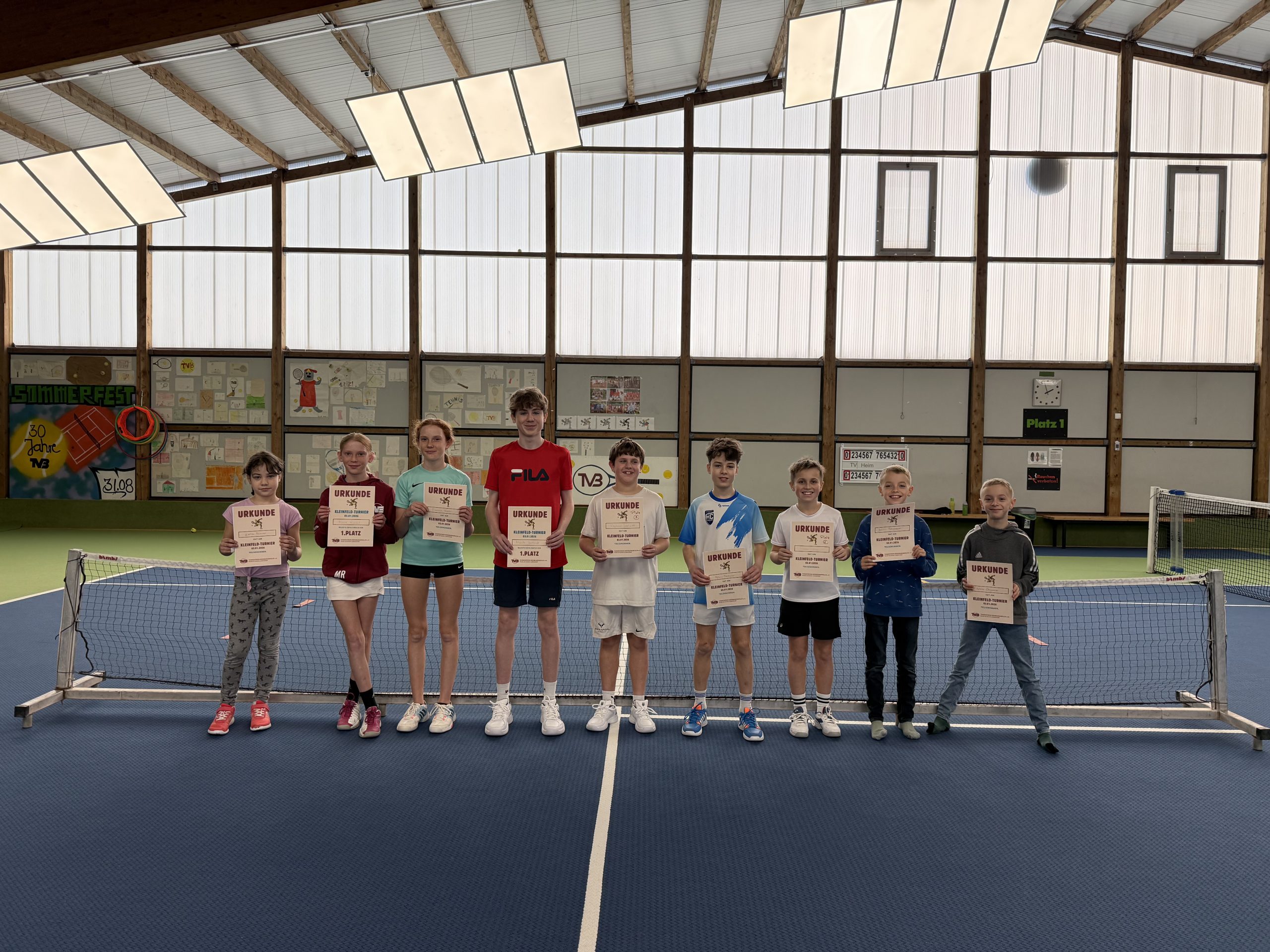 Am 05. Januar 2026 fand in der Tennishalle Birkmannsweiler das Neujahrs-Kleinfeldturnier unserer Jugend statt. Insgesamt neun tennisbegeisterte Kinder bis 18 Jahre waren der Einladung gefolgt und sorgten von Beginn an für eine ausgelassene Atmosphäre auf und neben dem Platz.
