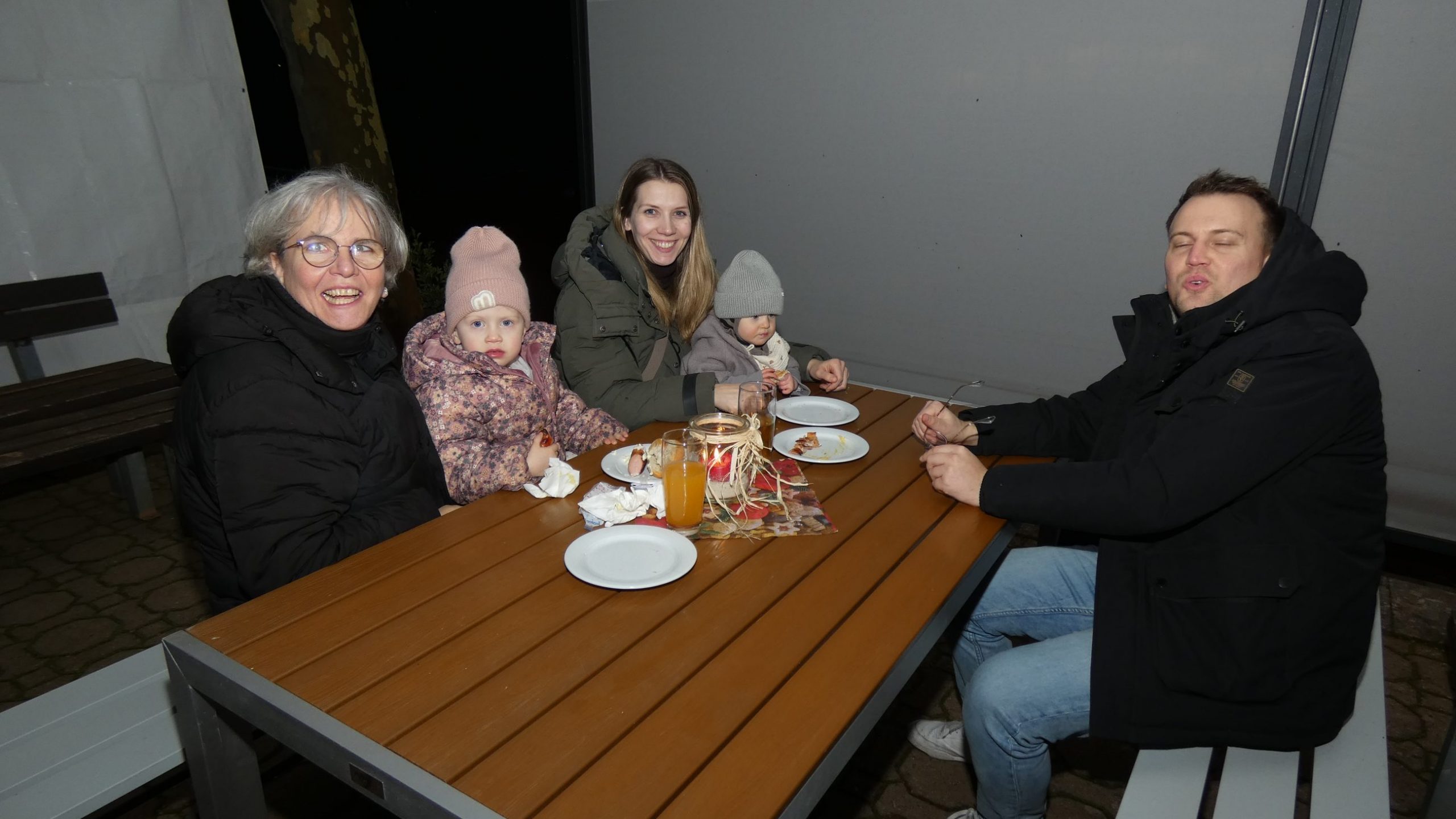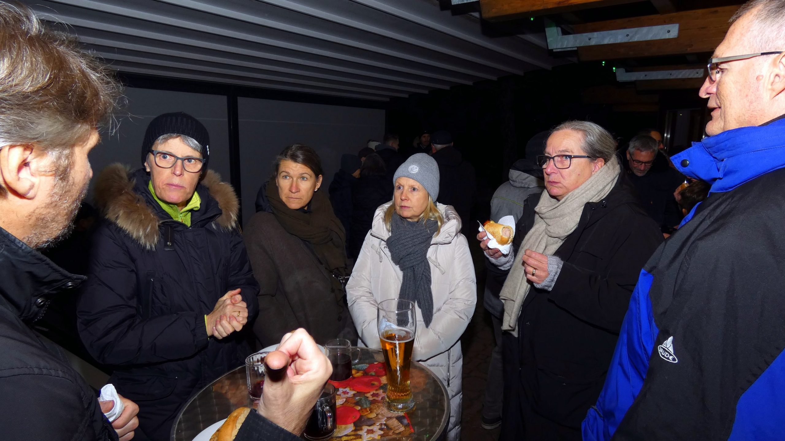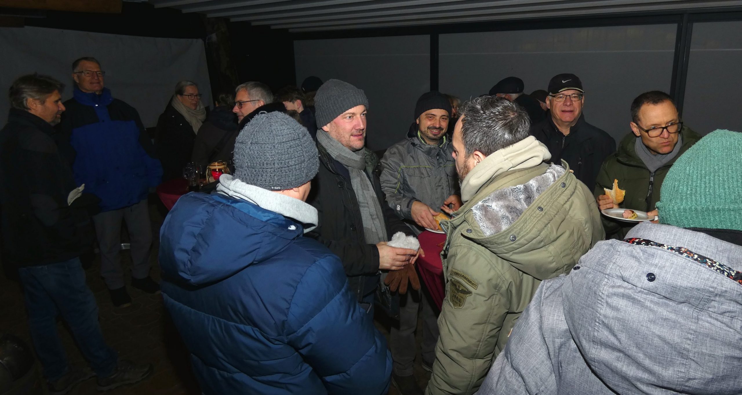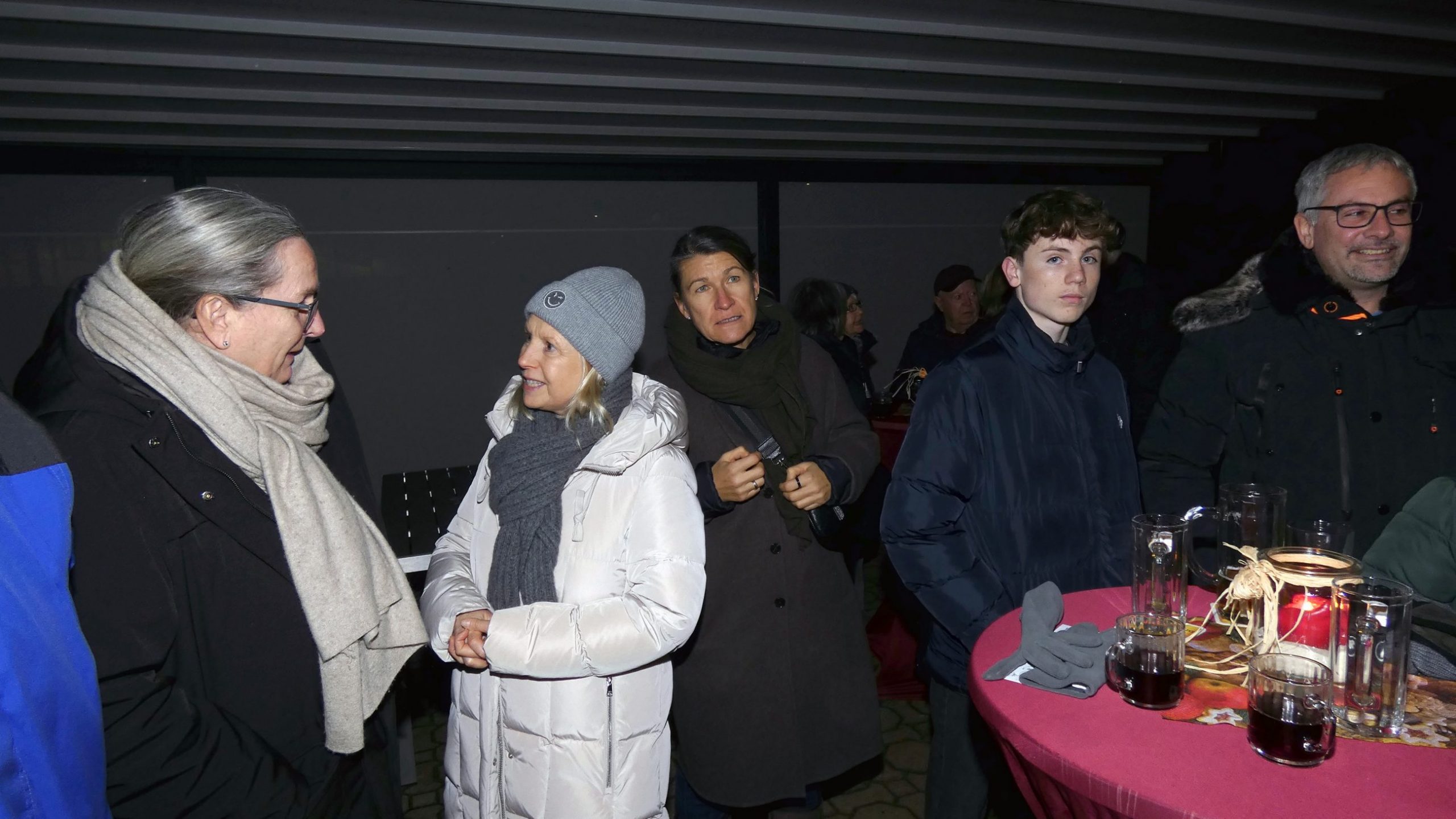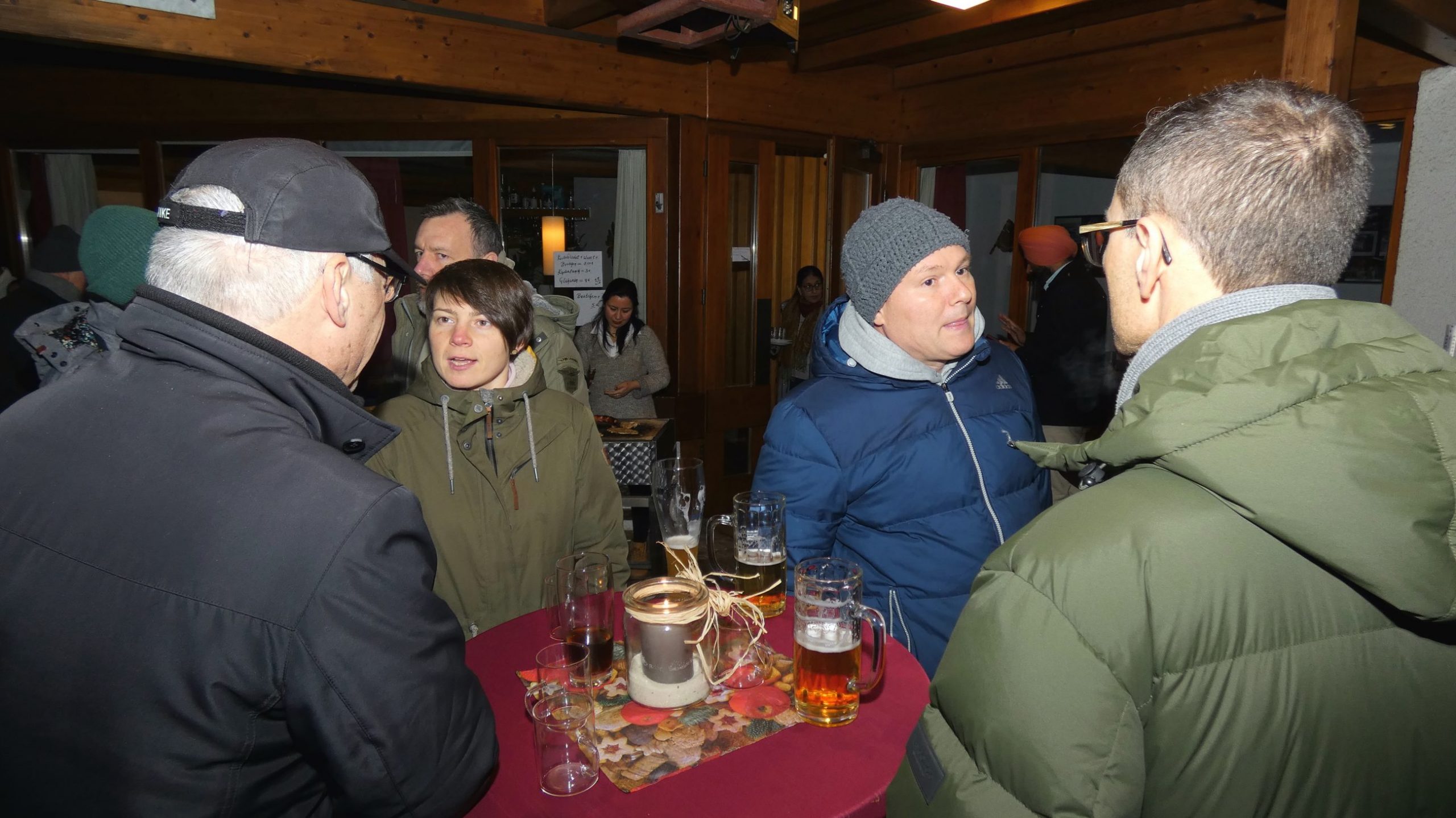 Ab 19:00 Uhr traf man sich anschließend auf der Terrasse der TVB-Gaststätte. Für das leibliche Wohl sorgten unsere neue Pächter Poonam und ihr Mann mit roten Würsten im Brötchen, selbst gemachtem Kartoffelsalat sowie Hähnchensteaks vom Grill. Dazu wurden Punsch und Glühwein angeboten. In entspannter Runde entstanden gute Gespräche und ein angenehmes Beisammensein.