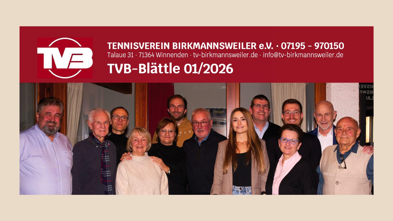 Das neue TVB-Blättle ist da! In dieser Ausgabe findet ihr viele tolle Einblicke und Infos rund um das Vereinsleben: Ausblick: Tag der offenen Tür Herren 55 im Tennis-Camp zur Saisonvorbereitung TV Birkmannsweiler bei Sportlerehrung Vereinsoutfit – Restbestand zum...
