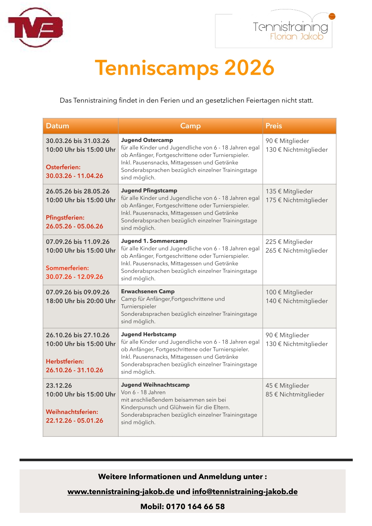 Im Pfingstcamp vertiefen wir Technik, verbessern das Spielverständnis und stärken gezielt Ausdauer und Koordination. Die Trainingseinheiten sind abwechslungsreich gestaltet und auf Alter sowie Spielstärke abgestimmt. Durch moderne Trainingsmethoden, Matchsimulationen und kleine Turnierformen sammeln die Teilnehmenden wertvolle Spielerfahrung. Natürlich ist auch für das leibliche Wohl bestens gesorgt – inklusive Snacks, Mittagessen und Getränke. Ideal für alle, die in den Ferien sportlich aktiv bleiben und ihr Tennis auf das nächste Level bringen möchten.