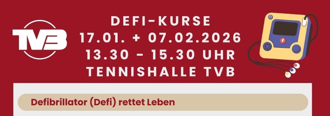 Tennishalle Birkmannsweiler Talaue 31, Winnenden, GermanyLiebe Mitglieder und Hallennutzer, stellt euch vor, wir haben einen Defibrillator – aber im Ernstfall traut sich keiner ran! Um dem vorzubeugen, bieten wir gemeinsam mit den Maltesern Defi-Kurse in unserer Tennishalle an. Unser Defi, vor vielen Jahren von den Maltesern gespendet, hängt in der Halle (Nebenraum neben Getränkeautomat). Im Sommer findet ihr ihn vorne […]